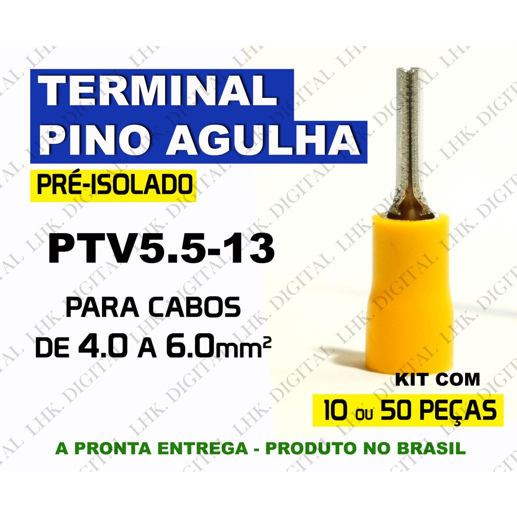 | Terminal de Pino Agulha PTV5.5-13 - Pre Isolado para fio de 4mm a 6mm este produto | R$ 12,90 | — | 4.9/5 | 4 |