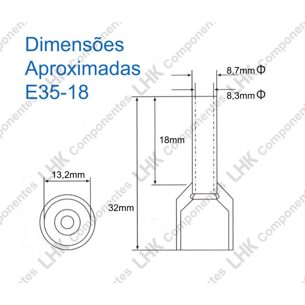 ⚠️⚠️⚠️ATENÇÃO!!!⚠️⚠️⚠️ POR GENTILEZA, LEIA A DESCRIÇÃO! Terminal destinado a crimpagem de 1 cabo de seção de 35mm2. Selecione a cor e a quantidade desejada nas variações do anúncio: Disponível em várias cores a selecionar nas variações Disponível em pacotes com quantidades a selecionar nas variações Especificações: Para cabo de seção 35mm2 Material do Condutor - cobre estanhado Comprimento da parte metálica: 18mm Material do isolante - poliamida Dimensões do produto nas fotos do anúncio