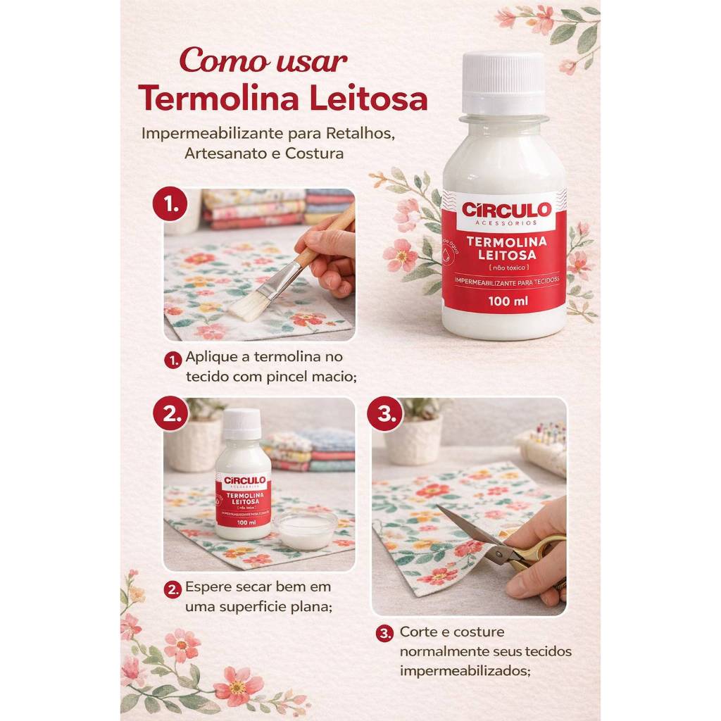 | Termolina Leitosa 100ml Círculo - cola impermeabilizante tecido - c... este produto | R$ 21,99 | — | 4.9/5 | — |