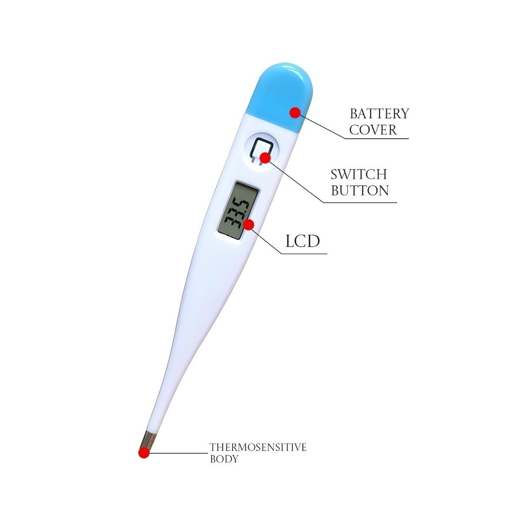 Termômetro digital clínico Especificações técnicas: ✔Conteúdo da embalagem: 1 x termômetro digital com ponta dura Características do termômetro digital: ✔100% à prova d'água - Bipe de aviso de medição ✔ Visor LCD de fácil leitura ✔ Alerta de febre ✔ Memória da última medição ✔ Desligamento automático ✔ Indicador de bateria fraca ✔ Método de medição: Digital ✔ Local de medição: cavidade oral, axila ✔ Indicador de bateria: Sim ✔ Memória: Último valor medido ✔ Tempo de medição: 60 a 120 segundos ✔ Alarme: Sim ✔ À prova d'água: Sim ✔ Unidade de medida: °C ✅Sobre o termômetro: ✔Termômetro digital, corpo de plástico, lavável; ✔ Possui display eletrônico que mostra a temperatura medida pelo sensor; ✔ Localizada na parte inferior do aparelho, a chapa metálica na parte inferior toca o corpo; ✔Funciona através de pilhas inseridas no compartimento superior do termômetro; ✔ Um alarme sonoro notifica você que a medição foi concluída; ✔Rápido e eficiente, o termômetro digital de temperatura corporal Luatek com visor LCD é essencial em qualquer kit de primeiros socorros. ,