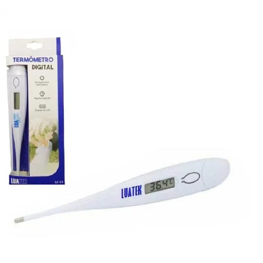 TERMOMETRO DIGITAL Descrição do produto Termômetro Digital Display LCD Temperatura Corporal Termômetro Digital Com Aviso Sonoro Características: - Conveniente: Fácil leitura com display de LCD. O aviso sonoro permite saber quando a medição esta completa. - Rápido: Leva 60 segundos para medir a temperatura corporal. Pode ser usado por via oral, retal e sob axila. - Precisão: +- 0.1 graus C. Faixa de medição 32 graus C-42 graus C. +-0.2 graus F. Faixa de medição 89.6 graus F-109.4 graus F. Itens Inclusos: 1 Termometro Digital 1 Bateria 1 Estojo acrílico Garantia: 90 dias contra defeitos de fábrica.