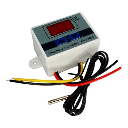 CONTROLADOR DE TEMPERATURA DIGITAL PARA DIVERSAS APLICAÇÕES EM 110 OU 220 VOLTS! (É BIVOLT) PARA QUENTE OU FRIO!!! GELADEIRAS, FREEZERS, ESTUFAS, CHOCADEIRAS, SAUNAS, AR CONDICIONADOS, AQUÁRIOS, AMBIENTES CLIMATIZADOS ETC... LIGA E DESLIGA AUTOMÁTICO DE ACORDO COM A TEMPERATURA MÁXIMA E MÍNIMA ESCOLHIDA POR VC! MODO DE PROGRAMAÇÃO: 1° PASSO: LIGUE O CONTROLADOR NA REDE DE ENERGIA (110V OU 220V) *FIOS VERMELHO E PRETO! 2° PASSO: LIGUE O EQUIPAMENTO DESEJADO NA SÁIDA DO CONTROLADOR (ESTA SAÍDA TAMBÉM É DE 110V OU 220V) *FIOS AMARELO E PRETO! 3° PASSO: PARA PROGRAMAR A TEMPERATURA INICIAL (LIGAR), APERTE E SEGURE O BOTÃO (SETA PARA CIMA); ATÉ O DISPLAY FICAR PISCANDO, SOLTE O BOTÃO E ESCOLHA A (TEMPERATURA DE LIGAR), CLICANDO NOS BOTÕES (PARA CIMA OU PARA BAIXO); DEIXE O DISPLAY PARAR DE PISCAR E A PROGRAMAÇÃO INICIAL ESTARÁ FEITA! 4° PASSO: PARA PROGRAMAR A TEMPERATURA FINAL (DESLIGAR), APERTE E SEGURE O BOTÃO (SETA PARA BAIXO); ATÉ O DISPLAY FICAR PISCANDO, SOLTE O BOTÃO E ESCOLHA A (TEMPERATURA DE DESLIGAR) NOS BOTÕES (PARA CIMA OU PARA BAIXO); DEIXE O DISPLAY PARAR DE PISCAR , E PRONTO!!! SEU CONTROLADOR JÁ ESTARÁ FUNCIONANDO! temperatura mínima: - 50°C temperatura máxima: +110°C Faixa de controle de temperatura: - 50°C até +110°C Precisão de medição de temperatura: mais ou menos 0,2 Precisão de controle de temperatura: mais ou menos 0.1 01 metro de fio com sonda impermeável tensão de alimentação: 110V 220 V Potência de saída: 1500w corrente máxima de saída: 10A Tamanho: largura 60mm X altura 45mm X profundidade 31 mm