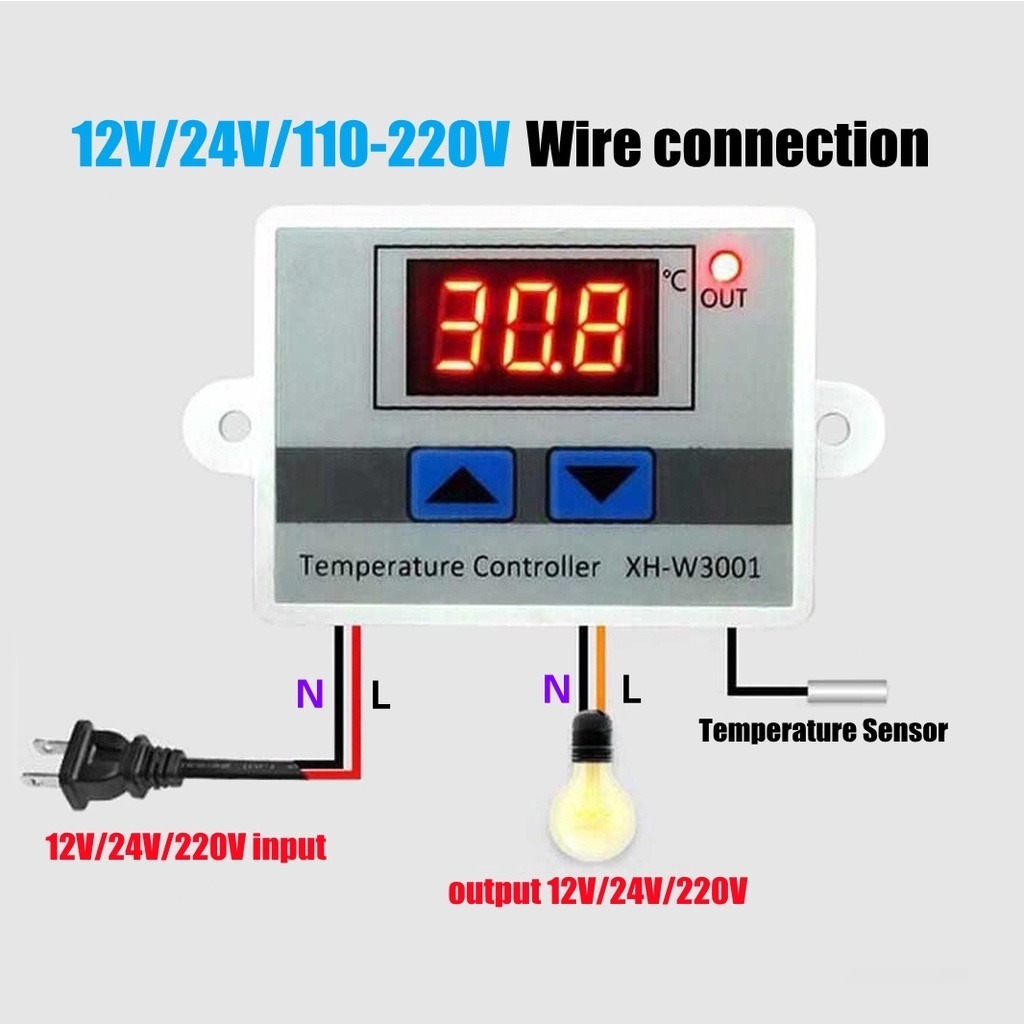 Descrição do produto em inglês após português Características do Características: 1.Modo automático 2.Ampla faixa de controle de temperatura 3.Precisão de controle de alta temperatura 4.Proteção de conexão reversa 5.Instalação fácil Especificação do produto: Nome do produto: Controlador de temperatura do microcomputador Modelo do produto de qualidade: XH-W3001 Tensão de fornecimento: 12/24/220V Faixa de Medição de Temperatura: -50℃~110℃ Faixa de controle de temperatura: -50℃~110℃ Precisão do controle de temperatura: 0,1℃ Potência de carga: 120/240/1500W Entrada de medição: sonda impermeável NTC10K L = 1 metro Tipo de saída direta: Saída direta Capacidade de saída máxima de 10A Distância do furo de instalação: 73mm (diâmetro 4mm) Tamanho da aparência: 60*45*31mm Instruções: Para definir a temperatura de inicialização para definir a temperatura de inicialização: Pressione uma vez o botão para cima para exibir a temperatura de inicialização, pressione e segure o botão para cima por cerca de 3 segundos, o número de temperatura de inicialização piscará, e o valor de temperatura desejado pode ser definido pelo alto e para baixo Botões Temperatura de parada de conjunto de temperatura de parada de conjunto: Pressione uma vez o botão para baixo uma vez para exibir a temperatura de parada, pressione e segure o botão por cerca de 3 segundos, o número de temperatura de parada piscará, e o valor de temperatura desejado pode ser definido pelos botões para cima e para baixo Reset: Quando a energia está ligada, pressione e segure as teclas para cima e para baixo ao mesmo tempo, o tubo digital exibe 888 e, em seguida, pula automaticamente para a temperatura de detecção, ou seja, restaura as configurações da fábrica O pacote inclui: Termostato X1 ************************************************** Features: 1.Automatic mode 2.Wide temperature control range 3.High temperature control accuracy 4.Reverse connection protection 5.Easy installation Specification: Product name: Microcomputer temperature controller Product Model: XH-W3001 Supply voltage: 12/24/220V Temperature measurement range: -50℃~110℃ Temperature control range: -50℃~110℃ Temperature control accuracy: 0.1℃ Load power: 120/240/1500W Measurement input: NTC10K waterproof probe L=1 meter output type: direct output Output capacity: max 10A Installation hole distance: 73mm (diameter 4mm) Appearance size: 60*45*31mm Instructions: To set the startup temperature: Press the up button once to display the startup temperature, press and hold the up button for about 3 seconds, the startup temperature number will flash, and the desired temperature value can be set by the up and down buttons Set stop temperature: Press the down button once to display the stop temperature, long press the button for about 3 seconds, the stop temperature number will flash, and the desired temperature value can be set by the up and down buttons reset: When the power is on, press and hold the up and down keys at the same time, the digital tube displays 888 and then automatically jumps to the detection temperature, that is, restores the factory settings Package includes: Thermostat X1
