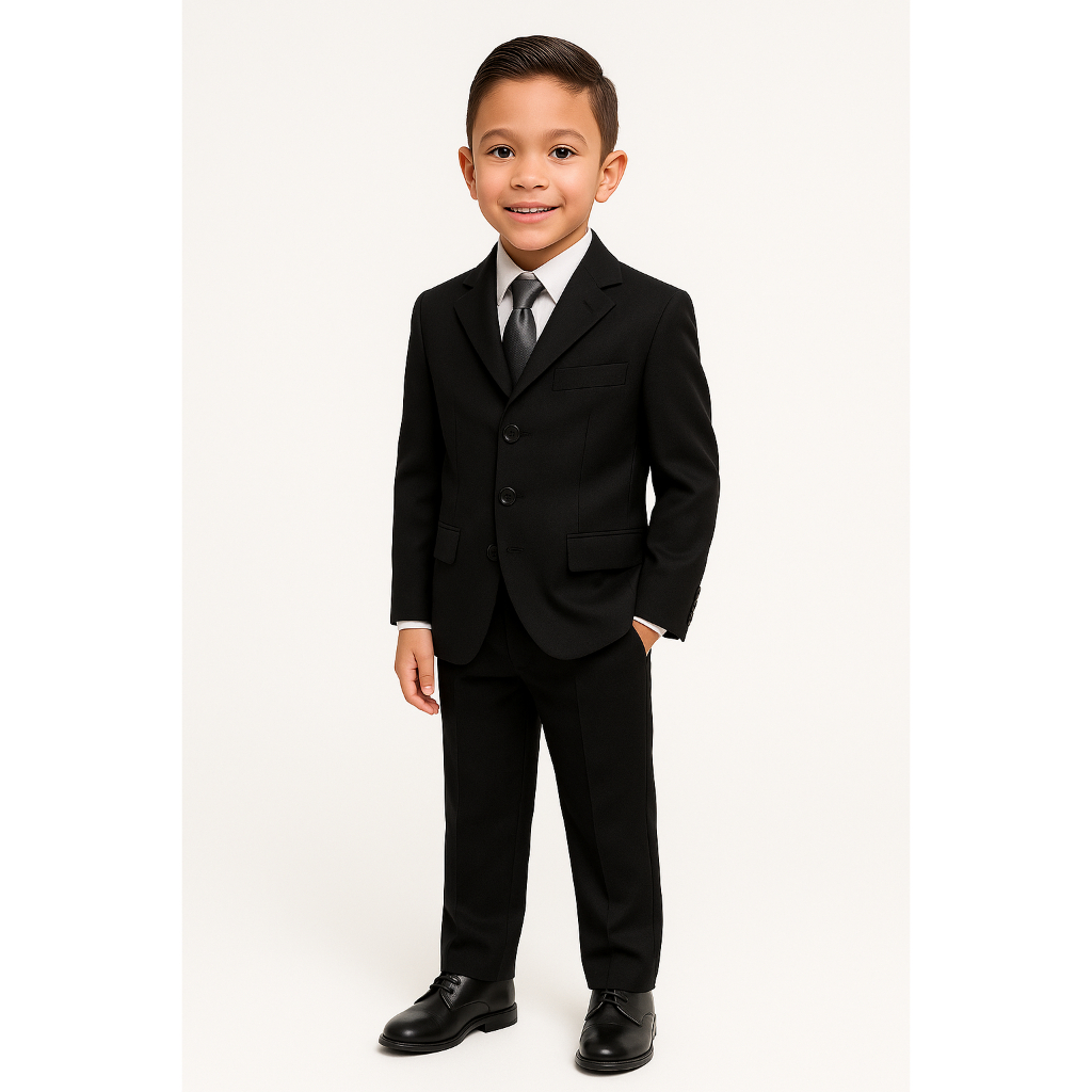 Terno Completo Infantil Social 5 Peças Paletó + Calça + Camisa + Gravata + Cinto Tecido Oxford Premium