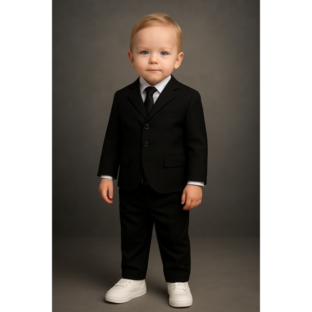 Terno Completo para Bebê 5 Peças Blazer+Calça+Camisa+Cinto+Gravata Terninho Poderoso Chefinho