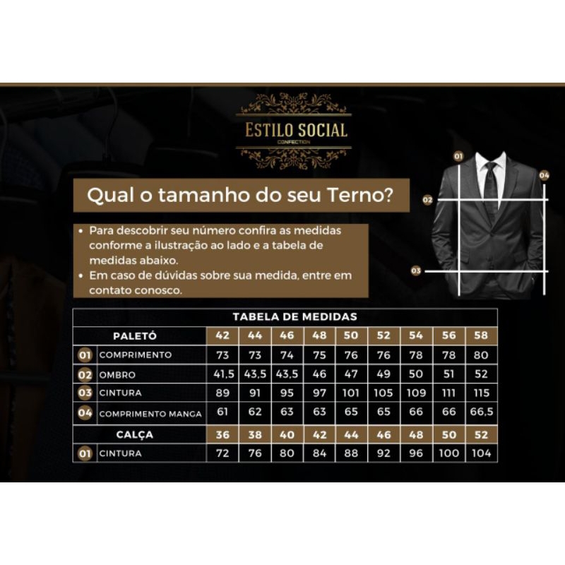 Tabela rápida para você comparar este item com outros similares de Ternos dentro do nosso catálogo.