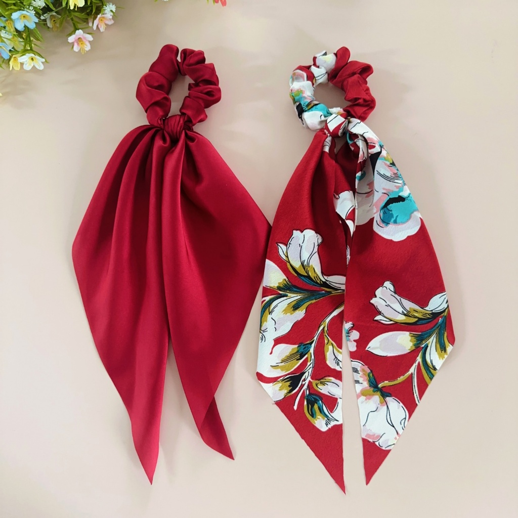Terno Vermelho Bohemia Flor Étnica Scrunchies Laços De Elásticos Cetim Arco Cabeça Corda Ins Moda Acessório Para Cabelo