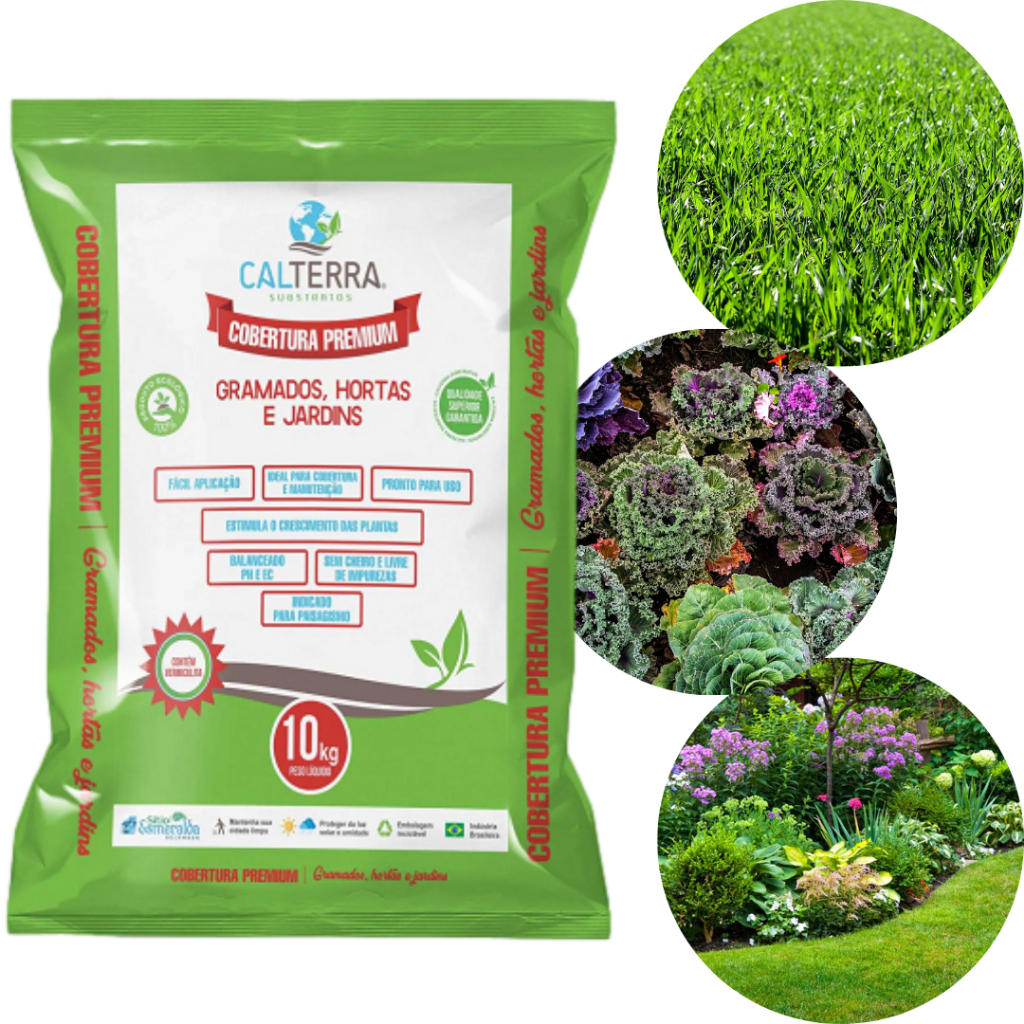 Terra adubada Cobertura Premium Gramados Hortas e Jardins 3KG, 10kg ou 20KG Calterra.
