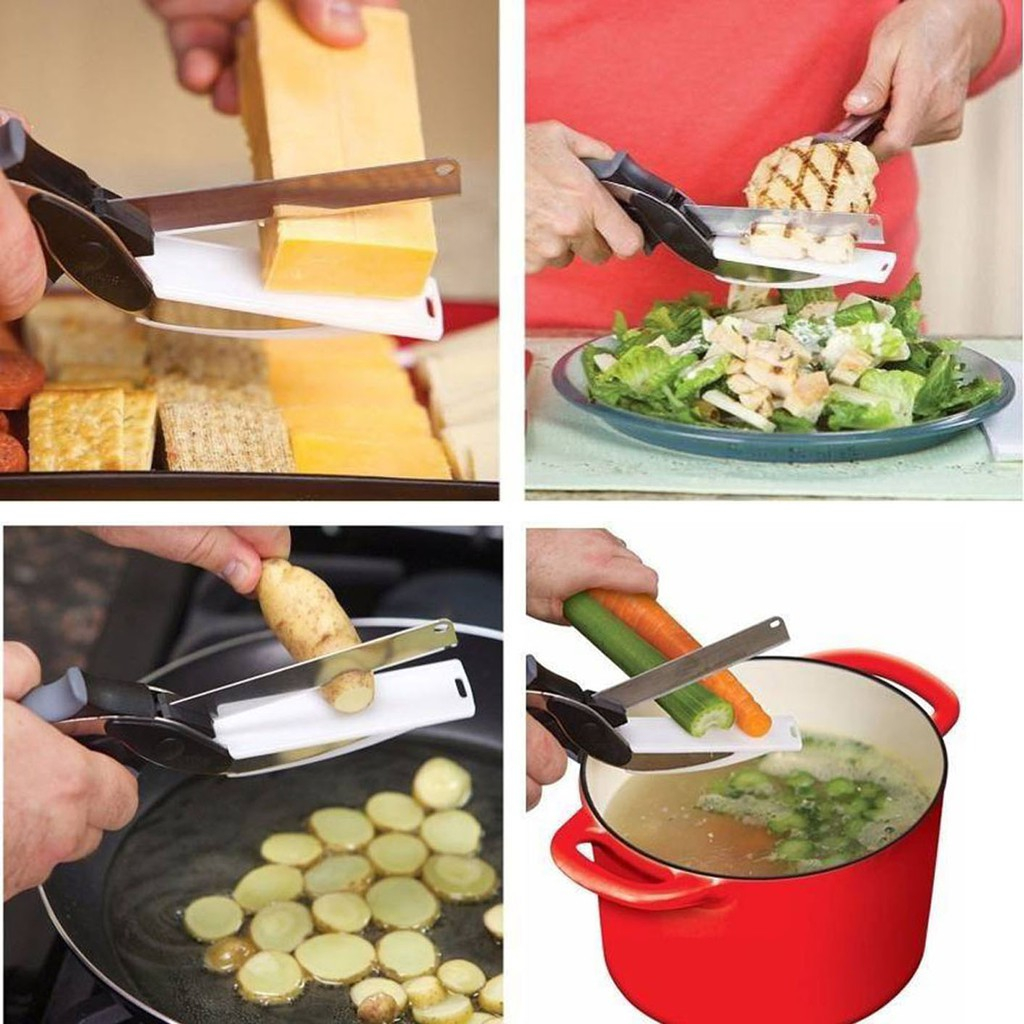 Tesoura Com Faca E Tabua Multifunção Aço Inox Clever Cutter