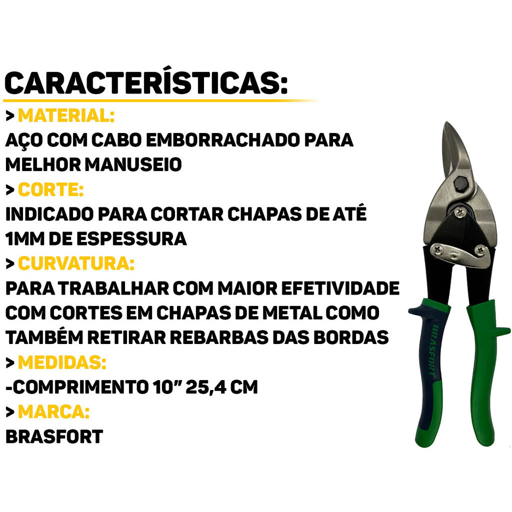 Tesoura De Corte Funileiro Direito Tipo Aviação 10 Polegadas Para Corte Em Chapas De Até 1mm