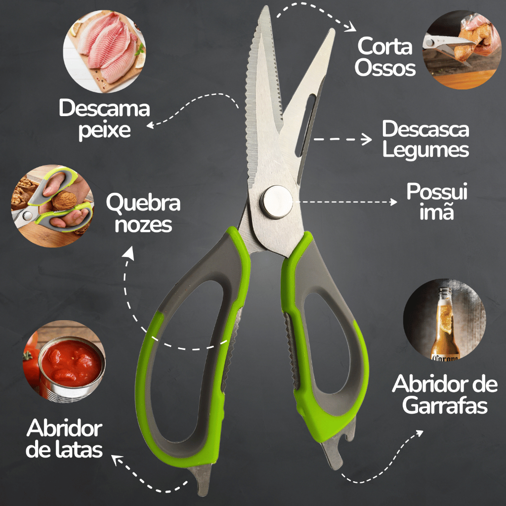 Tesoura de Cozinha Inox Multifuncional 7 em 1 Profissional | Corta Ossos, Carne, Frango e Legumes