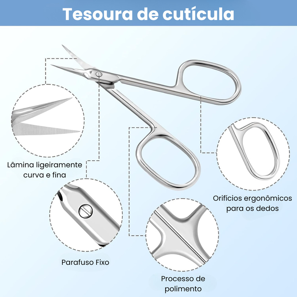 Tesoura De Cutícula Aço Inoxidável Fina Para Manicure Sobrancelha Cílios