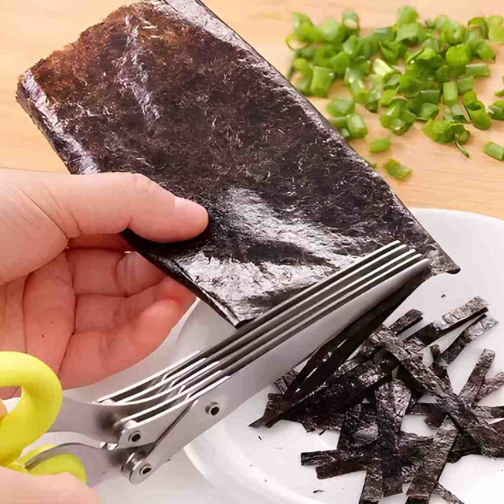 Tesoura de Picar Cortar Alimentos Legumes Temperos Ervas Para Cozinha 5 Lâminas Afiada Resistente Aço Inoxidável