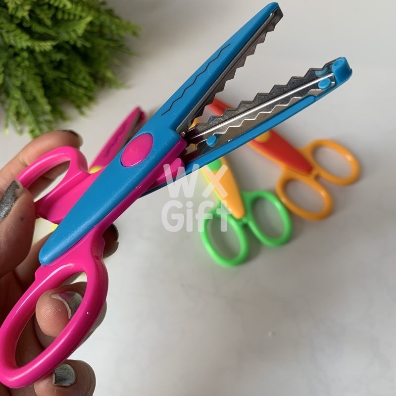 Tesoura de Picote no Tamanho 13 cm para uso escolar e manual. Ideal para uso em ambientes educacionais ou para projetos que envolvem crianças. A lâmina em aço inoxidável assegura cortes limpos e precisos. Com sua dimensão compacta de 13 cm, é fácil de guardar e prática para levar a qualquer lugar. Seus cortes possuem formatos diversos que dão um toque extra aos trabalhos manuais. Só escolher o melhor formato de Corte para você levar. - Pacote com 1 Unidade - Ponta redonda com acabamento plástico - Cortes: Diversos (Vide Foto) - Tamanho:13 cm - Cores: Vermelho Onda simples; Azul Zig Zag; Laranja Onda Picote; Rosa Onda 2 lados