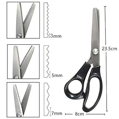 ----------Nota: Tesoura com formato serrilhado----------------Nota: Tesoura com formato serrilhado----------------------Nota: Tesoura com formato serrilhado------------ Destaques : Tesoura multiuso: indispensável na sua caixa de costura. A lâmina afiada é serrilhada em vez de reta, deixando um padrão em zigue-zague durante o corte. O padrão em zigue-zague limita o comprimento das linhas desgastadas na borda do tecido inacabado, minimizando os danos. Observe que há um pouco de óleo na lâmina para evitar ferrugem, limpe-a antes de usar Aperto confortável:O presente perfeito para seus entes queridos. Os cabos da tesoura serrilhada são feitos de materiais ABS e TPR de alta qualidade, macios e ergonômicos. Além disso, a alça foi otimizada e o corpo é mais fino e suave, fazendo você se sentir mais confortável CORTE EFICAZ: Nenhum projeto é grande demais para essas tesouras. As lâminas serrilhadas dão detalhes extras aos projetos, o que significa que são perfeitas para quiltar, aparar e cortar bordas. Eles também podem ser usados em tecido ou papel, pois fornecem uma borda afiada de longa duração que corta até a ponta Lâmina Afiada: Lâmina de aço inoxidável com serrilhas de diferentes polegadas, lâmina afiada para corte decorativo fácil e perfeito. A lâmina resistente garante que cada corte seja nítido e claro, tornando esta tesoura perfeita para qualquer projeto ou design Tesoura profissional resistente: feita de aço de alto carbono de nível industrial resistente, mais durável, afiada e fácil de usar Nota: Devido ao monitor diferente e efeito de luz, a cor real do item pode ser um pouco diferente da cor mostrada nas fotos. -Obrigado! Por favor aguarde 0-1cm medio desvio devido medio manual. Especificação: Color:Preto + aço inoxidável Material: Aço inoxidável, Abs, aço carbono Tamanho:23.5*9cm Descrição: Novação e durabilidade estão no centro dos nossos produtos, concebidos para tornar as tarefas mais fáceis e eficientes. Os cabos macios e ergonômicos permitem fácil controle do corte, tornando esta tesoura perfeita para adultos e crianças. Cortar cantos em tecidos e designs redondos nunca foi tão fácil! Nenhum projeto é grande demais para essas tesouras. As lâminas serrilhadas adicionam detalhes extras aos projetos, o que significa que são perfeitas para quiltar, aparar e cortar bordas. Eles também podem ser usados em tecido ou papel, pois fornecem uma borda afiada e duradoura que corta até a ponta. Características * As tesouras perfurantes são projetadas para uso diário, para tarefas como cortar papel, tecido, forrar ou desembalar * Lâminas de aço inoxidável endurecido para um afiamento duradouro * As lâminas de aço inoxidável proporcionam uma ação de corte suave * O design leve oferece controle sobre seus cortes . * Adequado para uso por canhotos ou destros. Lista de pacotes: - 1x tesouras