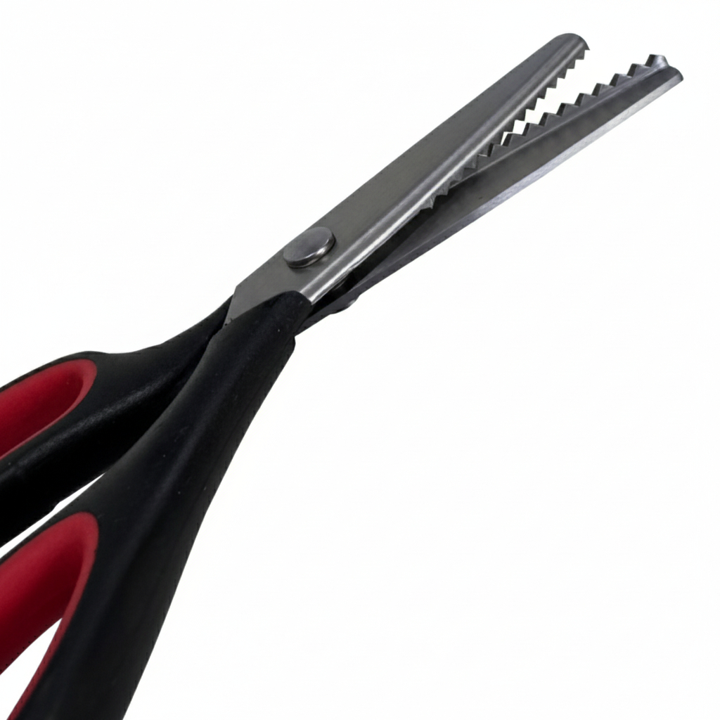 TESOURA DE PICOTAR ZIG-ZAG VANTAGENS: *Perfeita para quem busca precisão e qualidade em seus trabalhos artesanais e de costura *Com um comprimento de 23 cm, essa tesoura é ideal para cortes em ziguezague, proporcionando um acabamento diferenciado e criativo em seus projetos. *A lâmina de aço garante durabilidade e eficiência no corte, enquanto a forma larga da ponta facilita o manuseio. * Seja para trabalhos em tecidos, papel ou EVA, essa tesoura é uma excelente escolha para quem busca resultados profissionais.