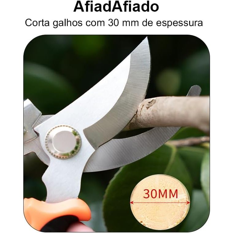 Tesoura de Poda para Jardinagem: Super Afiada e Durável ✂️ Aço Inoxidável • Design Ergonômico • Ideal para Profissionais e Doméstico Principais Destaques ✅ Conforto e Facilidade de Uso Alça curva ergonômica + cabo antiderrapante: Reduz pressão e fadiga nas mãos, mesmo em longas sessões de poda. Mola de alta qualidade: Empurra as lâminas automaticamente, facilitando o corte e minimizando esforço manual. ✅ Precisão e Segurança Lâminas de aço inoxidável com microponta: Afiadas, à prova de ferrugem e anticorrosivas, cortam caules e galhos delicadamente sem danificar partes importantes das plantas. Trava de segurança conveniente: Mantém as lâminas fechadas firmemente quando não em uso, reduzindo riscos de lesões acidentais e facilitando o armazenamento. ✅ Resistência e Durabilidade Material robusto: Lâminas de aço inoxidável com revestimento de baixa fricção + corpo de PP (plástico resistente) — evita ferrugem, permanece afiada por mais tempo e suporta uso frequente. Manutenção simples: Basta limpar, secar e aplicar óleo mineral nas lâminas/articulações após o uso para prolongar a vida útil. ✅ Versatilidade Total Ideal para jardineiros profissionais (horticultores, viveiristas, produtores de estufas) e uso doméstico. Perfeta para podar árvores frutíferas, flores, plantas ornamentais, ervas, bonsai, hidroponia e mudas de jardim/estufa. Especificações Técnicas Materiais: • Lâminas: Aço inoxidável • Corpo/Alça: PP (plástico resistente) Funcionalidades: Corte preciso, trava de segurança, mola automática, alça ergonômica. Notas Importantes ⚠️ Diferença de Cor: A cor real pode variar ligeiramente em relação às fotos, devido a diferentes configurações de monitores e luz. ⚠️ Erro de Medição: Devido à medição manual, pode haver um desvio de 0-1 cm — agradecemos sua compreensão.