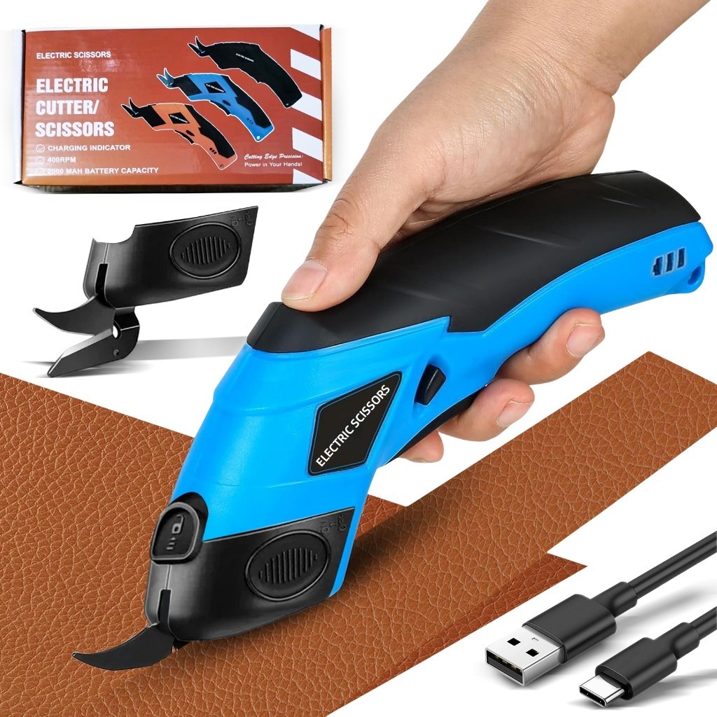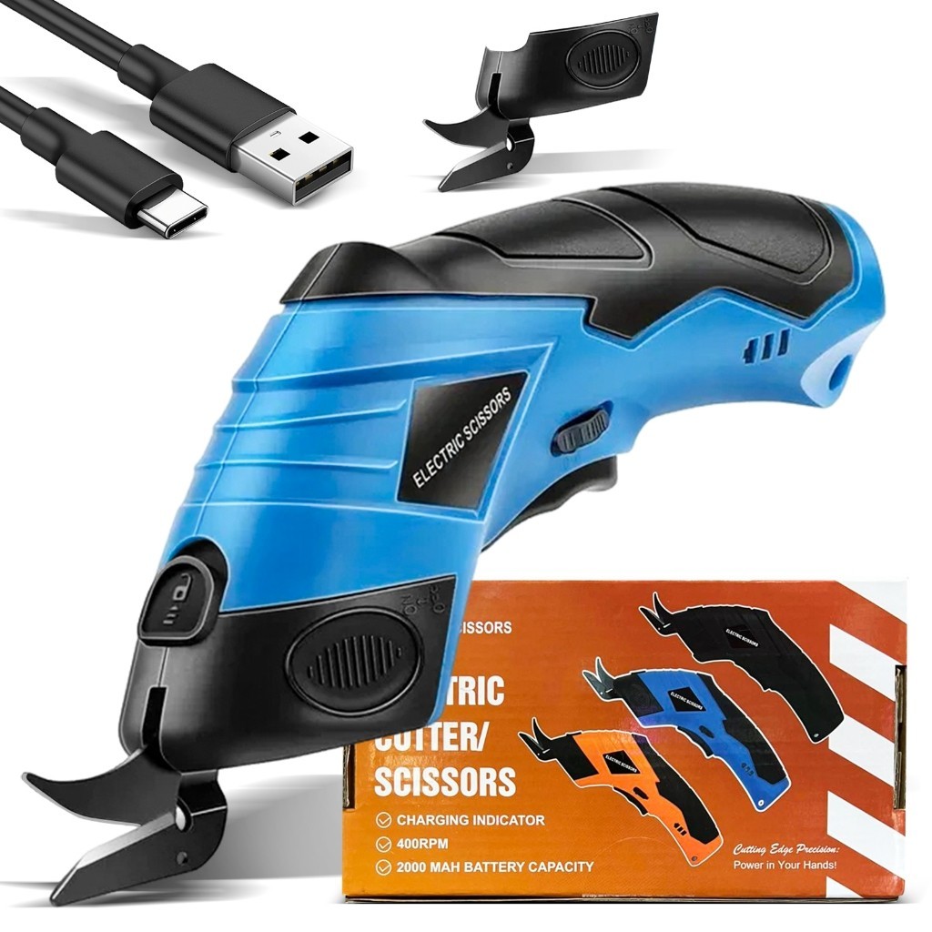 Tesoura Elétrica Multifuncional Corte Tecidos Couro Papel e Plástico Rapidamente Recarregável 400RPM