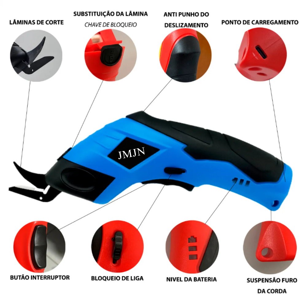Tesoura Elétrica Recarregável USB-C Corte Rápido e Preciso Tecido EVA Papelão TINNY YOU