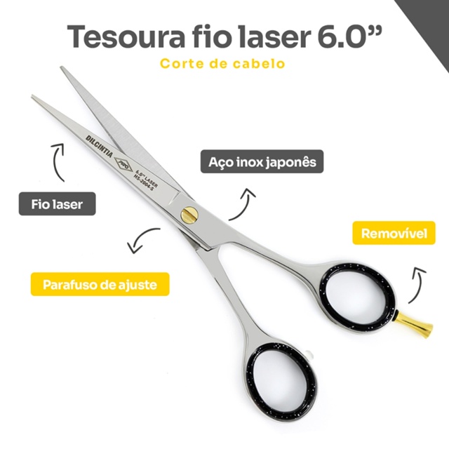 Tesoura Fio Laser Profissional para Cabelos 6.0" Aço Inox Japonês Dilcintia