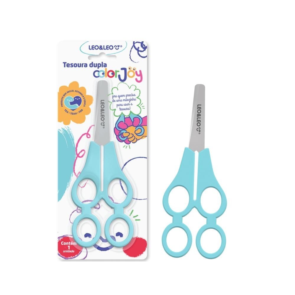 Tesoura Inclusiva Dupla Escolar Infantil 17cm Tandem Color Joy TEA TDAH TOD