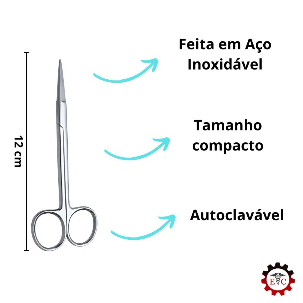 Tesoura Iris ou Gengiva 12 Cm Reta Autoclavável Corte Delicado Oftalmologia Odontologia