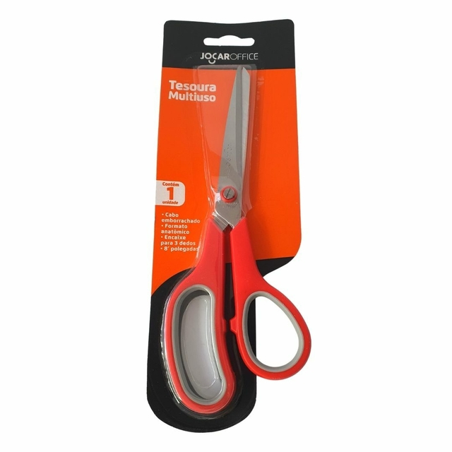Tesoura Multiuso Cabo Emborrachado Grande 21cm 8 Polegada Inox Jocar Office