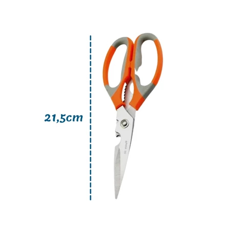 Cansado de mil utensílios ocupando espaço e não dando conta de tudo na cozinha? 🍽️🤯 A Tesoura Multiuso de Cozinha 21,5 cm reúne em um só produto: ✂️ lâminas afiadas em aço inox, 🤲 cabo emborrachado ergonômico, 🍾 abre-garrafas, 🌰 quebra-nozes e muito mais! Ela oferece cortes precisos e firmes em qualquer alimento, acelerando o preparo das refeições com praticidade e segurança. Imagine cortar carnes 🍗, legumes 🥕, ervas 🌿, abrir embalagens 📦 e até quebrar nozes 🌰 usando apenas uma ferramenta — tudo isso com conforto nas mãos e sem esforço. O cabo antiderrapante garante segurança mesmo com mãos úmidas, enquanto o inox premium proporciona alta durabilidade e limpeza super fácil. ✨ 🛒 Garanta agora a sua tesoura multiuso e transforme de vez a rotina da cozinha! Clique em comprar e experimente a praticidade de ter vários utensílios em um só produto!