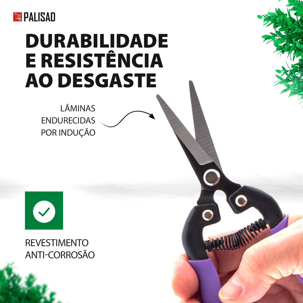 Tesoura de Poda de Flores Palisad 605548 – 180 mm com Alças Revestidas de Borracha para Jardinagem e Uso Doméstico A Tesoura de Poda de Flores Palisad 605548 é uma ferramenta versátil e essencial, com 180 mm de comprimento e alças de metal revestidas de borracha. Ideal para jardineiros apaixonados e uso doméstico, esta tesoura foi projetada para cortar brotos jovens e caules de até 10 mm de diâmetro, sendo perfeita para a arte delicada de moldar bonsais e criar esculturas topiárias. Além disso, sua versatilidade se estende para dentro de casa, facilitando o corte de papel, papelão, tecido e material de amarração, tornando-a uma ferramenta multifuncional para várias tarefas no dia a dia. Características do Produto: Especificações Técnicas: Modelo: Tesoura de Poda de Flores Palisad 605548 Comprimento Total: 180 mm Espessura Máxima de Corte: 10 mm Material das Lâminas: Aço médio carbono de alta qualidade Alças: Metal revestido com borracha para conforto e segurança Processo de Têmpera: Lâminas com afiação de precisão e tratamento de têmpera por indução Vantagens: Durabilidade e Longevidade: Aço Médio Carbono de Alta Qualidade: A Tesoura de Poda de Flores Palisad 605548 é fabricada com aço médio carbono de alta qualidade, sendo extremamente resistente a cargas de flexão e quebra. Isso garante uma durabilidade excepcional e alta longevidade, permitindo que a ferramenta mantenha o desempenho ideal mesmo sob uso intenso. Alto Desempenho de Corte: Afiação de Precisão: As lâminas são submetidas a um processo de têmpera por indução e possuem bordas de corte de alta precisão, o que assegura cortes limpos e precisos. Esse tratamento especial prolonga a eficácia de corte, minimizando a necessidade de afiações frequentes e mantendo a eficiência de uso por muito mais tempo. Proteção Contra Danos: Oxidação Controlada: As superfícies de trabalho das lâminas são cuidadosamente oxidadas para evitar a corrosão e garantir a integridade das lâminas mesmo em ambientes úmidos. Essa proteção adicional mantém a tesoura sempre em ótimas condições, garantindo uma longa vida útil. Conforto no Trabalho: Alças Revestidas de Borracha: As alças de metal revestidas com borracha oferecem uma pegada confortável e antideslizante, proporcionando maior controle preciso durante o corte. Esse design ergonômico ajuda a minimizar a fadiga das mãos, tornando a poda e o corte mais eficientes e agradáveis, mesmo durante longos períodos de uso. Armazenamento e Transporte Seguros: Mecanismo de Travamento: A Tesoura de Poda de Flores Palisad 605548 possui um mecanismo de travamento que mantém as alças fixadas na posição comprimida, facilitando o armazenamento seguro e o transporte da tesoura. Essa característica essencial ajuda a evitar acidentes e mantém a ferramenta protegida quando não estiver em uso. Aplicações e Benefícios: A Tesoura de Poda de Flores Palisad 605548 é ideal para jardineiros e profissionais que se dedicam à manutenção de bonsais e topiárias ou que buscam uma ferramenta confiável para o corte preciso de flores e plantas delicadas. Sua versatilidade também a torna perfeita para tarefas domésticas como o corte de papel, papelão, tecido e material de amarração, tornando-a uma adição valiosa tanto para seu kit de jardinagem quanto para suas ferramentas domésticas. Resumo das Vantagens: Durabilidade e Resistência: Feita de aço médio carbono de alta qualidade, com lâminas de precisão durável. Versatilidade: Ideal para poda de flores, bonsais, e tarefas domésticas de corte. Conforto Ergonomicamente Projetado: Alças revestidas com borracha antideslizante para maior controle e conforto durante o uso. A Tesoura de Poda de Flores Palisad 605548 é uma ferramenta versátil e durável, combinando alta precisão de corte, conforto ergonômico e proteção contra danos. Seja para o cuidado de seus bonsais, topiárias ou para tarefas de corte em casa, esta tesoura é a escolha ideal para quem busca eficiência e qualidade no trabalho. Adicione a Tesoura de Poda de Flores Palisad 605548 ao seu kit de ferramentas de jardinagem e domine a arte de cuidar de suas plantas com precisão e facilidade!