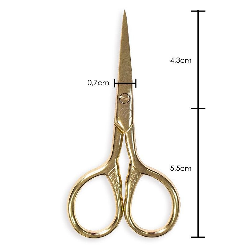 Tesoura para designer de sobrancelha Klass Vough - SC-03 A Tesoura para designer de sobrancelha Klass Vough - SC-03 é feita de aço inoxidável, ideal para cortes ou retoques em sobrancelhas, sua ponta fina permite cortes mais precisos e perfeitos. Disponível em três modelos, escolha a sua e arrase! Modo de Uso: Com cuidado, utilize a tesoura SC-03 para corte dos pelos da sobrancelha e acabamentos. Dimensões: ver detalhes na foto Material: Aço inoxidável Acabamento: Dourado