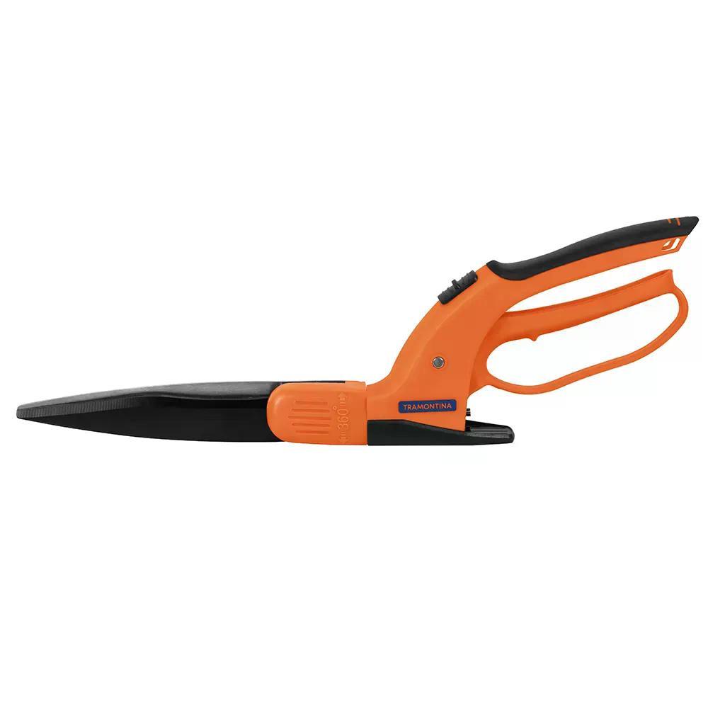 Um canteiro ou gramado bem aparado é lindo, não é mesmo? E para deixá-los perfeitos é necessário aparar aqueles cantinhos onde o cortador de grama não chega. Foi pensando nisso que trouxemos para você a tesoura para grama Tramontina em aço com cabo plástico que permite cortes mais precisos para um a Diferenciais: - A tesoura é temperada em todo o corpo da peça, proporcionando maior resistência e menor desgaste durante o uso. - Lâminas fabricadas em aço carbono especial de alta qualidade. - Cabo giratório em 360°, com 16 posições de corte que permitem fazer qualquer contorno. - Base de apoio com regulagem de altura, proporcionando um corte uniforme a grama. - Cabos em plástico leves e ergonômicos, proporcionando conforto durante o uso. - Botão de trava que possibilita operar a tesoura com uma só mão. - Possui uma trava de segurança para fechamento das lâminas quando a tesoura não está em uso. - Leve e prática no uso.