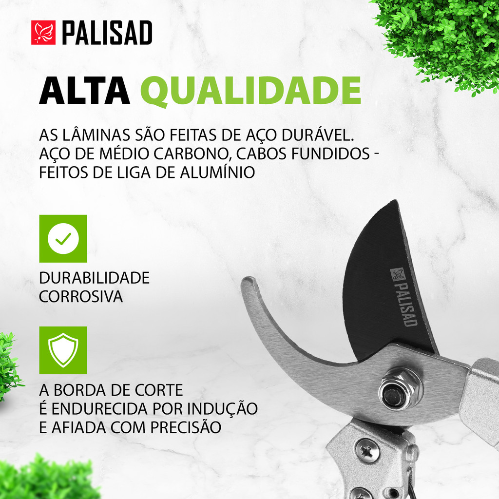 A Tesoura para Poda Palisad 605038 emerge como uma ferramenta indispensável no arsenal de qualquer jardineiro, paisagista ou entusiasta do cuidado com plantas. Com seu comprimento de 180 mm, esta tesoura é meticulosamente projetada para cortar galhos vivos com diâmetro de até 15 mm, tornando-a perfeita para uma ampla gama de tarefas de jardinagem, desde o cuidado rotineiro de jardins e hortas até a arte refinada de modelar bonsais e criar esculturas topiárias. A funcionalidade avançada e o design pensado desta tesoura garantem cortes precisos e cuidadosos, essenciais para a manutenção da saúde e beleza das plantas. Principais Vantagens: Confiabilidade: Construída com lâminas de aço médio carbono de alta resistência e alças de liga de alumínio fundido, esta tesoura é robusta o suficiente para suportar uso intensivo, assegurando confiabilidade a longo prazo para todas as necessidades de poda. Alta Durabilidade: A borda de corte é submetida a um processo de têmpera por indução, resultando em uma afiação de precisão que não apenas mantém a tesoura afiada por mais tempo, mas também aumenta significativamente sua durabilidade, mesmo após cortes repetidos. Resistência à Corrosão: Com um revestimento de teflon na lâmina de corte e um revestimento de óleo na lâmina de suporte, a tesoura é protegida contra a corrosão. Esses revestimentos asseguram que a ferramenta permaneça em excelentes condições de uso, independentemente das condições climáticas ou do ambiente. Trabalho Confortável: As alças são projetadas com inserções de borracha termoplástica, proporcionando uma pegada firme e confortável. Isso previne o deslizamento durante o uso, aumentando a segurança e permitindo cortes mais precisos e controlados. Proteção contra Abertura Acidental: Um fixador prático mantém as alças seguramente fechadas durante o armazenamento ou transporte, eliminando o risco de aberturas acidentais que poderiam danificar as lâminas ou causar ferimentos. Assim, a Tesoura para Poda Palisad 605038 se estabelece como uma ferramenta de poda excepcional, combinando durabilidade, eficiência e design ergonômico para proporcionar uma experiência de corte superior. Ideal para a manutenção diária de jardins, poda de hortas, ou para a delicada arte de esculpir bonsais e topiárias, esta tesoura oferece cortes limpos e suaves, essenciais para promover o crescimento saudável das plantas. Com a possibilidade de ajuste na densidade do fechamento das lâminas, a qualidade do corte pode ser facilmente adaptada às necessidades específicas, tornando esta tesoura uma adição versátil e valiosa para qualquer conjunto de ferramentas de jardinagem.