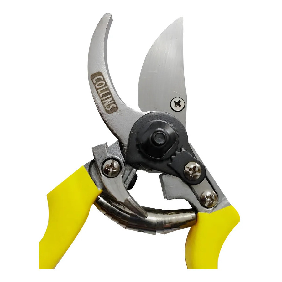 Descrição: Tesoura Profissional Para Poda COLLINS com trava de segurança Lâmina em aço carbono; Estrutura maciça em alumínio injetado; Com cabo anatômico e ergonômico; Trava de segurança com acionamento em um único botão. ESPECIFICAÇÕES: Diâmetro de corte: 19mm Comprimento: 21,5cm Aplicação: Indispensável nos trabalhos de jardinagem e floricultura para o corte de caule e flores, preparo de arranjos florais, poda de arvores frutiferas. Tipos de Poda: - Poda de limpeza (Retirada de galhos velhos ou doentes) - Poda de condução (Orienta a planta em determinado sentido) - Poda de formação (Dar uma planta ou um conjunto de plantas uma forma básica) Conservação e segurança: - Manter em local seco e seguro longe do alcance das crianças - Manter sempre limpa após o uso - Antes de guardar lubrifique a lamina e parafusos'.