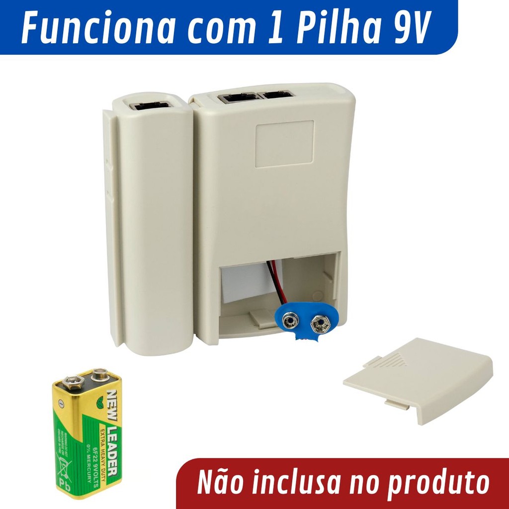 Testador de Cabos de Rede Lan RJ11 RJ45 Internet Telefonia Removível Compacto C/ LED para transporte