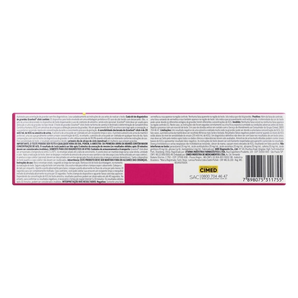 | Teste de Gravidez Grav Test Click 1 Unidade este produto | R$ 14,49 | — | 5.0/5 | 1 |