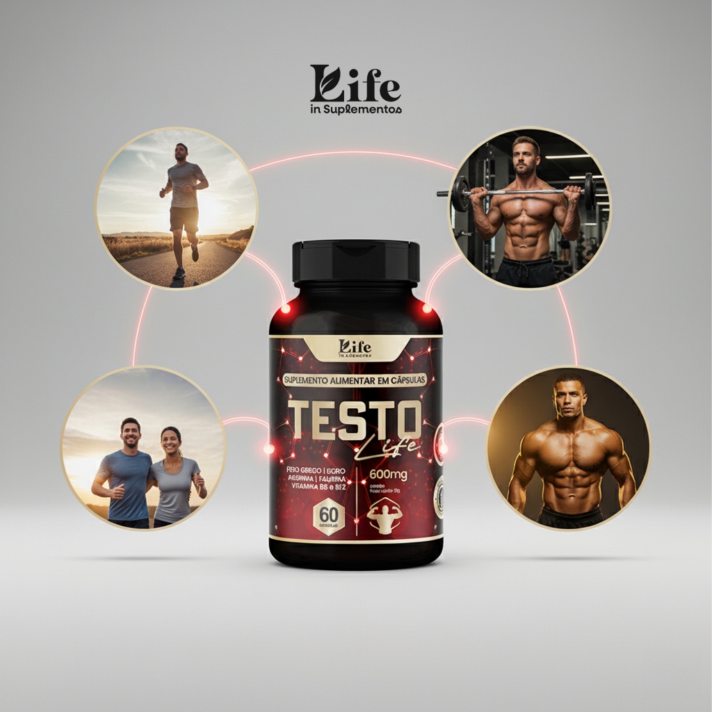Testo Life 60 Cápsulas – Energia, Bem-Estar e Vitalidade Suplemento alimentar em cápsulas, formulado com ingredientes naturais que podem auxiliar na disposição física, equilíbrio do dia a dia e apoio à rotina ativa. Frete Grátis. Testo Life é um suplemento destinado a homens e mulheres que buscam suporte para manter energia, foco e vitalidade dentro de uma rotina movimentada. Sua combinação de vitaminas, minerais e aminoácidos oferece apoio nutricional para quem pratica atividades físicas ou mantém um estilo de vida intenso. Benefícios principais (linguagem permitida): Pode contribuir para mais disposição no dia a dia. Apoia o equilíbrio natural do organismo. Pode auxiliar na prática de atividades físicas e no bem-estar geral. Contribui para reduzir a sensação de cansaço. Fórmula com vitaminas, minerais e aminoácidos essenciais. Ingredientes presentes: Feno-grego – Ingrediente natural com compostos tradicionalmente usados para bem-estar. Boro – Mineral envolvido em funções metabólicas do organismo. Arginina – Aminoácido que participa de processos relacionados à circulação e entrega de nutrientes. Taurina – Aminoácido relacionado ao foco e suporte ao desempenho diário. Vitaminas B6 e B12 – Importantes para o metabolismo energético e função neuromuscular. Modo de uso: Ingerir 2 cápsulas ao dia, preferencialmente antes das refeições, ou conforme orientação de um profissional de saúde. Informações adicionais: 60 cápsulas por embalagem (30 dias de uso) Produto natural, livre de glúten Contraindicado para gestantes, lactantes e menores de 19 anos Produto dispensado de registro conforme RDC nº 27/2010 da Anvisa Avisos importantes: Não é um medicamento. Não promete resultados imediatos ou garantidos. Este suplemento não tem finalidade de diagnóstico, cura, tratamento ou prevenção de doenças. As informações têm caráter informativo e não substituem orientação profissional.