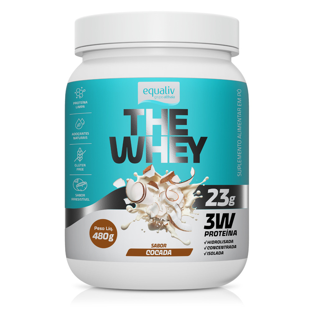 Equaliv The Whey. O único. Equaliv The Whey Cocada é o suplemento alimentar de whey concentrado, isolado e hidrolisado, desenvolvido com tecnologia de ponta, adoçado com ingredientes naturais, facilitando a adesão ao uso diário. Sua formulação clean label 3W foi escolhida para focar em sabores indulgentes e diferentes do mercado. Combinando os benefícios das três formas de proteína whey: rápida absorção do isolado e hidrolisado, e a digestão gradual do concentrado. Isso proporciona uma liberação contínua de aminoácidos, ideal para recuperação e construção muscular. WPC concentrado – é a forma menos pura do whey e com menor concentração de proteína. Possui lactose, carboidratos, minerais e gorduras. WPI isolado – maior concentração de proteína, sendo mais puro, devido ao processo de filtragem ser específico (eliminando gorduras, colesterol, carboidratos e lactose). WPH hidrolisado - a proteína é quebrada em peptídeos. Velocidade de absorção é mais rápida. Pode ser obtido do concentrado ou isolado e tem diferentes graus de hidrólise. Equaliv The Whey Cocada auxilia no aumento da massa muscular, recuperação pós-treino, manutenção da massa muscular, fortalecimento do sistema imunológico e perda de peso. Modo de uso: Consumir 32 g (2 medidas/ scoops) ao dia, antes e/ou depois do treino ou conforme orientação do médico e/ou nutricionista. USO PEDIÁTRICO (4 a 18 ANOS), ADULTOS, GESTANTES E LACTANTES Ingredientes: Blend de proteínas (Proteína de soro do leite concentrada (Whey Protein Concentrate - WPC), proteína de soro do leite isolada (Whey Protein Isolate - WPI) e proteína de soro do leite hidrolisada (Whey Protein Hidrolyzed - WPH)), (aromatizantes) aromas idênticos ao natural, (espessante) goma xantana, (edulcorantes naturais) glicosídeos de esteviol de Stevia rebaudiana Bertoni e taumatina e (antiumectante) dióxido de silício. Alergênicos: CONTÉM SOJA, LEITE E DERIVADOS Não contém glúten."