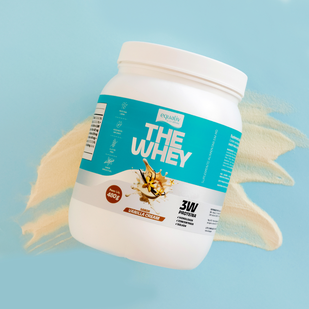 Equaliv The Whey. O único. Equaliv The Whey Vanilla Cream é o suplemento alimentar de whey concentrado, isolado e hidrolisado, desenvolvido com tecnologia de ponta, adoçado com ingredientes naturais, facilitando a adesão ao uso diário. Sua formulação clean label 3W foi escolhida para focar em sabores indulgentes e diferentes do mercado. Combinando os benefícios das três formas de proteína whey: rápida absorção do isolado e hidrolisado, e a digestão gradual do concentrado. Isso proporciona uma liberação contínua de aminoácidos, ideal para recuperação e construção muscular. WPC concentrado – é a forma menos pura do whey e com menor concentração de proteína. Possui lactose, carboidratos, minerais e gorduras. WPI isolado – maior concentração de proteína, sendo mais puro, devido ao processo de filtragem ser específico (eliminando gorduras, colesterol, carboidratos e lactose). WPH hidrolisado - a proteína é quebrada em peptídeos. Velocidade de absorção é mais rápida. Pode ser obtido do concentrado ou isolado e tem diferentes graus de hidrólise. Equaliv The Whey Vanilla Cream auxilia no aumento da massa muscular, recuperação pós-treino, manutenção da massa muscular, fortalecimento do sistema imunológico e perda de peso. Modo de uso: Consumir 32 g (2 medidas/ scoops) ao dia, antes e/ou depois do treino ou conforme orientação do médico e/ou nutricionista. USO PEDIÁTRICO (4 a 18 ANOS), ADULTOS, GESTANTES E LACTANTES Ingredientes: Blend de proteínas (Proteína de soro do leite concentrada (Whey Protein Concentrate - WPC), proteína de soro do leite isolada (Whey Protein Isolate - WPI) e proteína de soro do leite hidrolisada (Whey Protein Hidrolyzed - WPH)), (aromatizante) aroma natural, (espessante) goma xantana, (antiumectante) dióxido de silício e (edulcorantes naturais) glicosídeos de esteviol de Stevia rebaudiana Bertoni e taumatina. Alergênicos: CONTÉM SOJA, LEITE E DERIVADOS Não contém glúten.