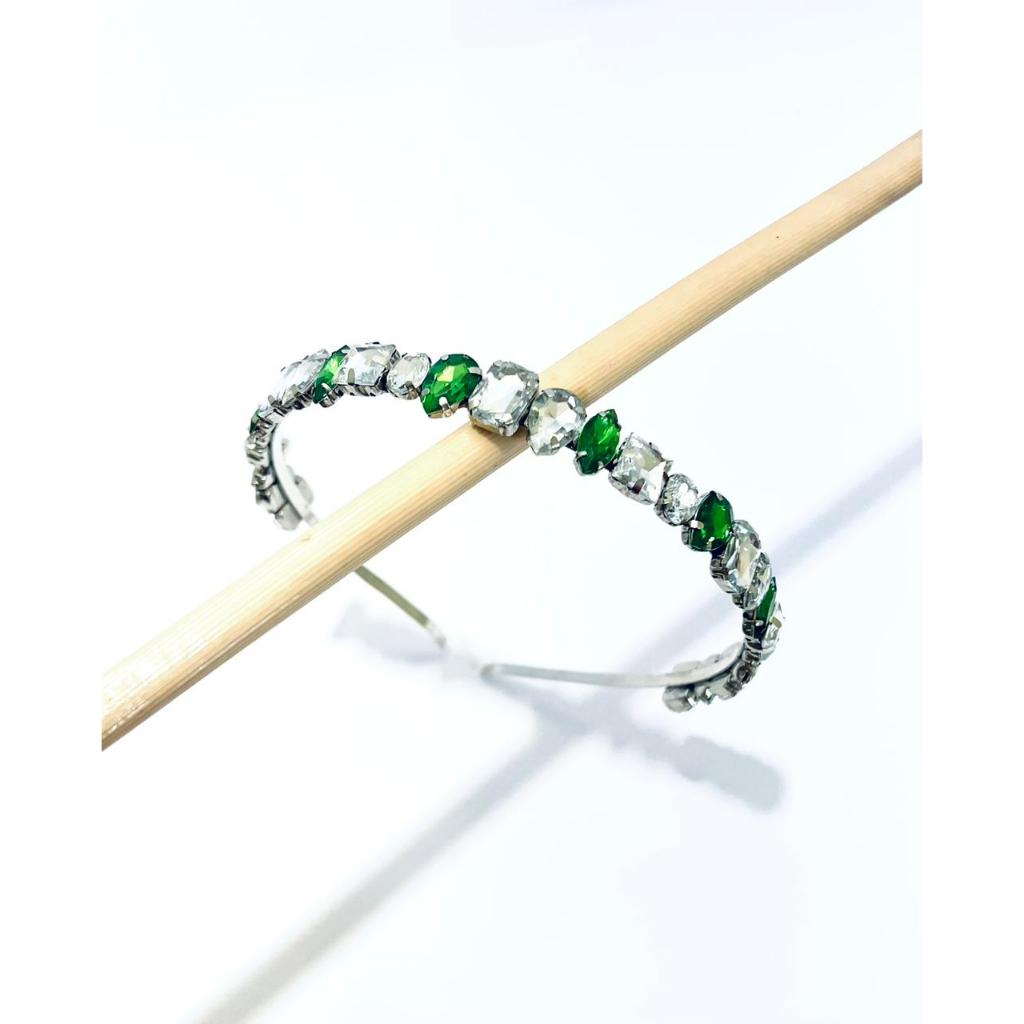 TIARA DE CABELO PEDRARIA METAL PRATA FORMATOS GEOMETRICOS CR/VERDE B madrinha casamento debutante festa arco de cabelo