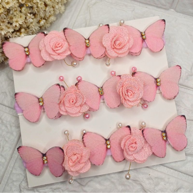 Tiara Faixinha Meia de Seda Rosa Bebê – Jardim Encantado com Borboletas e Flores– Acessório Luxo para Bebês