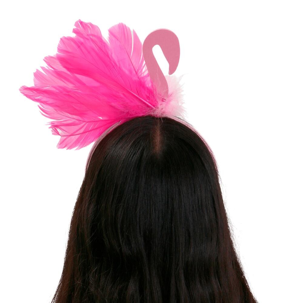 Tiara Flamingo Rosa Com Plumas Acessório Para Carnaval