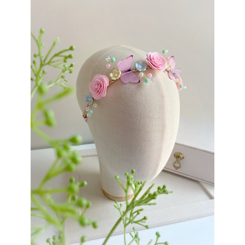 Tiara Headband Floral a borboletas 3D Jardim Encantado