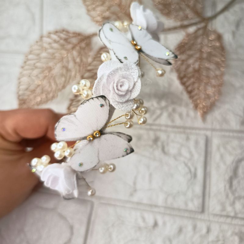 Tiara Jardim Encantado Luxo Branco Batizado😍 Faixinha Trançada ou Arco Encapado com Pérolas e Strass