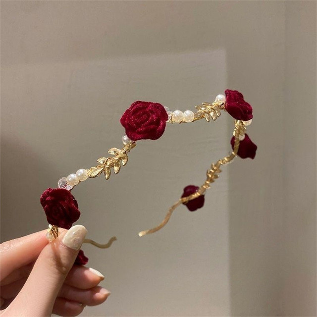Tiara Luxuosa De Rosa Vermelha Com Flores De Pérola , Acessórios Para Cabelo Mulheres , Uso Diário , Penteado Diadema