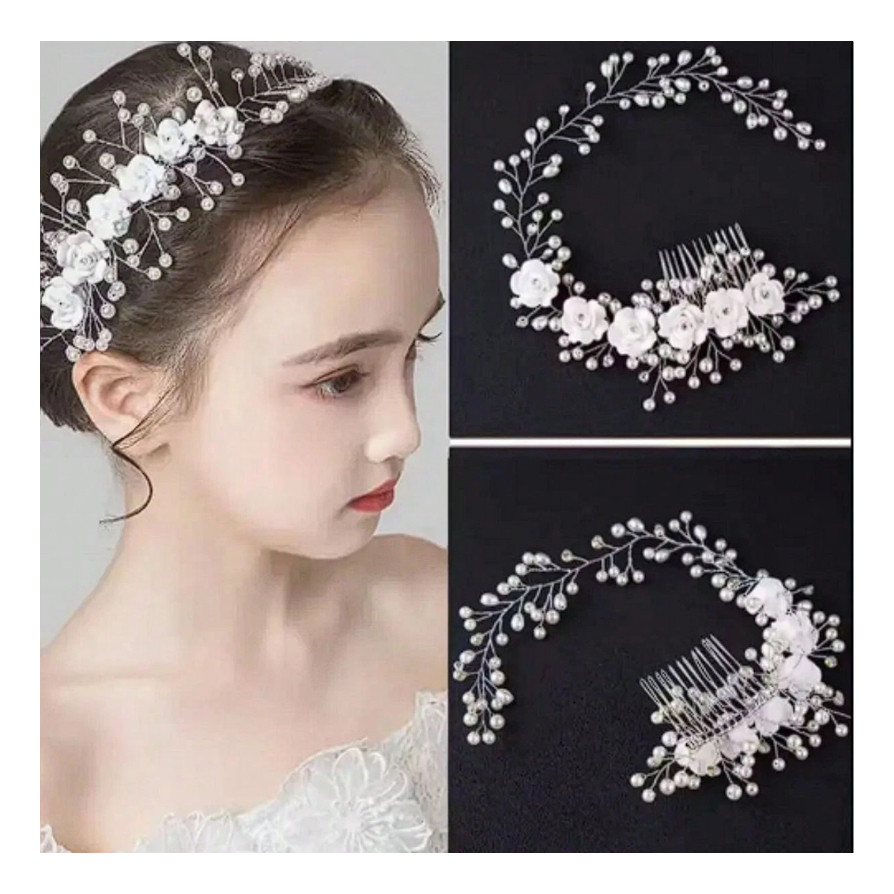 Tiara para Daminha Infantil – Arranjo de Cabelo com Flores e Pérolas