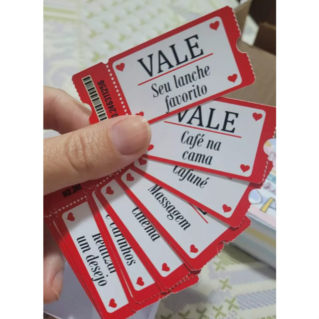 | Ticket Vale Romântico Kit com 16 Unidades Vales do Amor, Tickets do... este produto | R$ 26,90 | — | 4.4/5 | 4 |