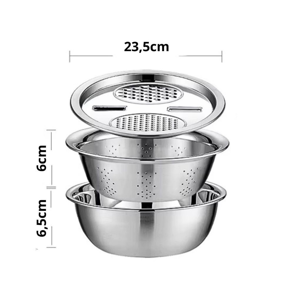 Tigela 3 em 1 Ralador Escorredor Bacia Fatiador Legumes Queijo Saladeira