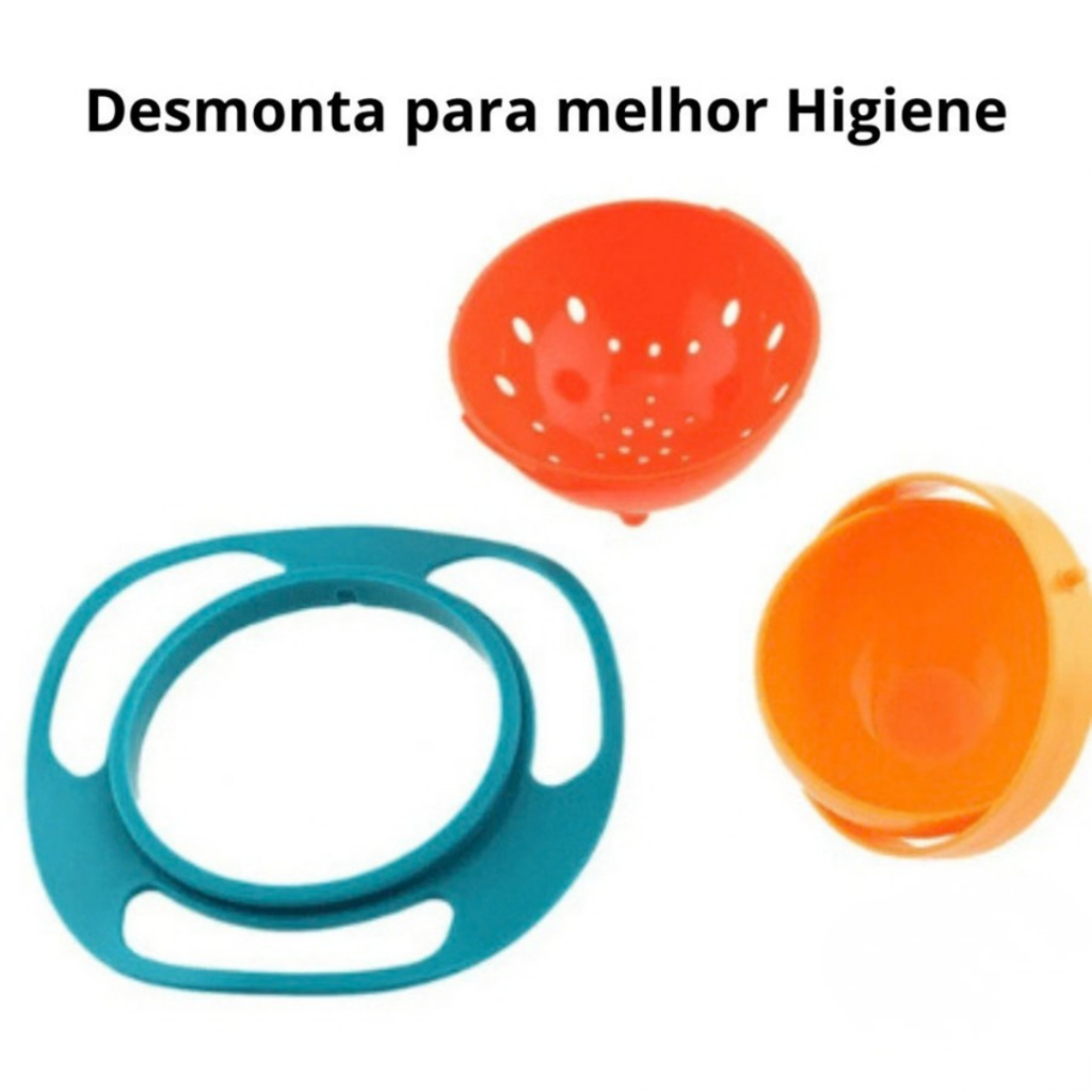 Tigela 360° Antivazamento para Bebê – Prato Giratório Infantil Não Derrama Varias cores disponível A tigela 360° Anti derramamento para bebê é ideal para a fase de introdução alimentar. Seu sistema giratório 360 graus mantém o alimento sempre na posição correta, ajudando a evitar derramamentos mesmo quando a criança vira o prato. O prato infantil giratório não derrama e permite que o bebê se alimente com mais autonomia, reduzindo sujeira e facilitando o dia a dia dos pais. Indicação de uso: -Crianças de 6 meses a 4 anos. Características do Produto: Produto: Tigela / Prato Infantil Modelo: Tigela 360° Anti derramamento Função: Prato giratório não derrama Material: Plástico resistente, livre de BPA Cores disponíveis: conforme variações do anúncio Conteúdo da Embalagem: -1x Tigela 360° Anti Derramamento para Bebê Observações Importantes: -As cores podem variar de acordo com a tela -Produto deve ser utilizado sob supervisão de um adulto -O prato não deve ser levado ao micro-ondas -Antes do primeiro uso é necessário lavar a tigela PRODUTO BEM EMBALADO PARA NÃO TER RISCO DE QUEBRA!!!
