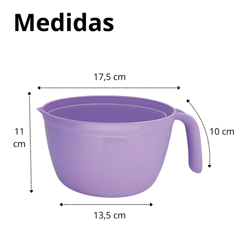 Tigela Plástica com Alça e Bico – 1,5L – Cor Lilás Prática e versátil, esta tigela plástica é ideal para o preparo de receitas no dia a dia. Com capacidade de 1,5 litros, ela conta com alça ergonômica e bico, facilitando o manuseio e o despejo de líquidos ou massas. Produzida em material resistente e de alta qualidade, é perfeita para uso na cozinha, seja para bater bolos, preparar massas ou servir alimentos. Características: Capacidade: 1,5 litros Cor: Lilás Material: Plástico resistente Com alça para maior firmeza e praticidade Bico que facilita o despejo sem sujeira Pode ser utilizada no micro-ondas, lava-louças e freezer Leve, durável e fácil de limpar Produto funcional e moderno, ideal para uso doméstico ou profissional. Garanta já a sua e traga mais praticidade para a sua cozinha!