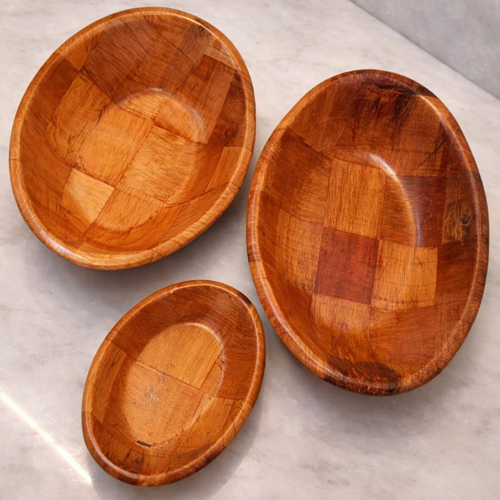 Tigelas Gamelas Bolw Madeira Envernizada Ovais e Quadradas Saladeiras kit com 6 moderno pratico